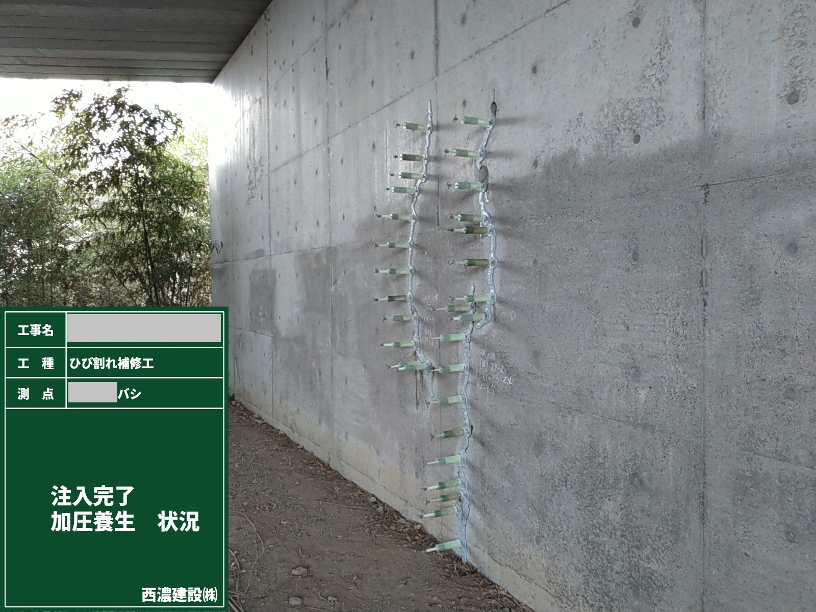 注入完了 加圧養生状況