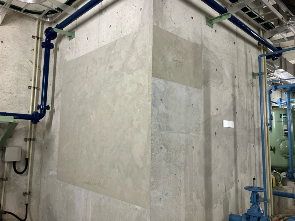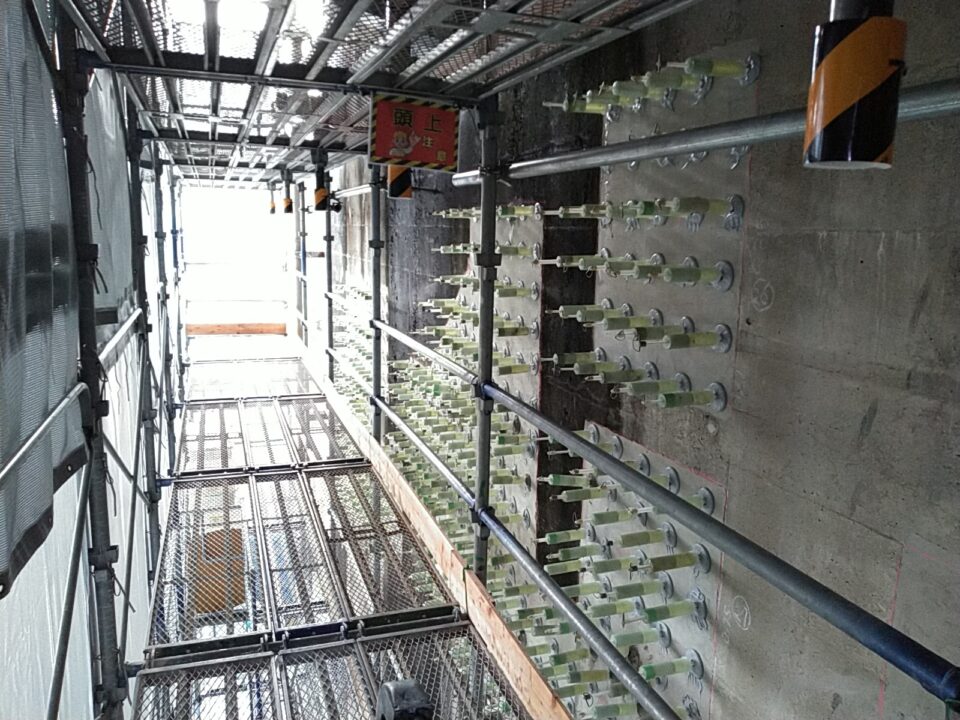 現在補修工事で多用されている「自動式低圧樹脂注入工法」は、躯体内部に雨水が侵入しないように表面のクラックを塞いでいますが、樹脂がコンクリートの内部構造まで達しないこともあり、強度復元力の弱さがネックとなっていました。